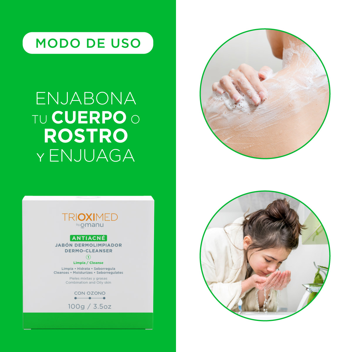 Con tus manos húmedas, crea espuma, después de tener suficiente cantidad, aplica en tu rostro o en la zona afectada y da un suave masaje, después enjuaga con abundante agua. Hazlo en la mañana y en la noche.